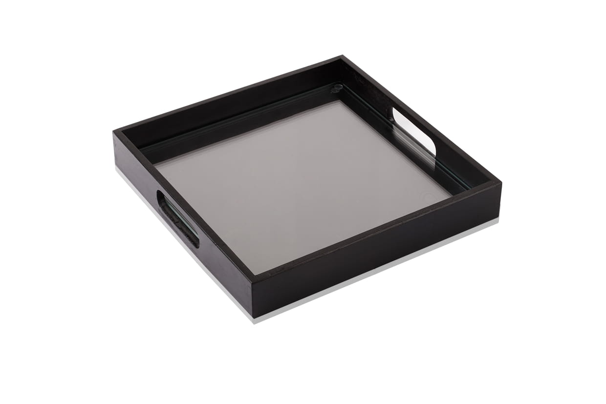 - Tray : stained and varnished wood with practical side handles .