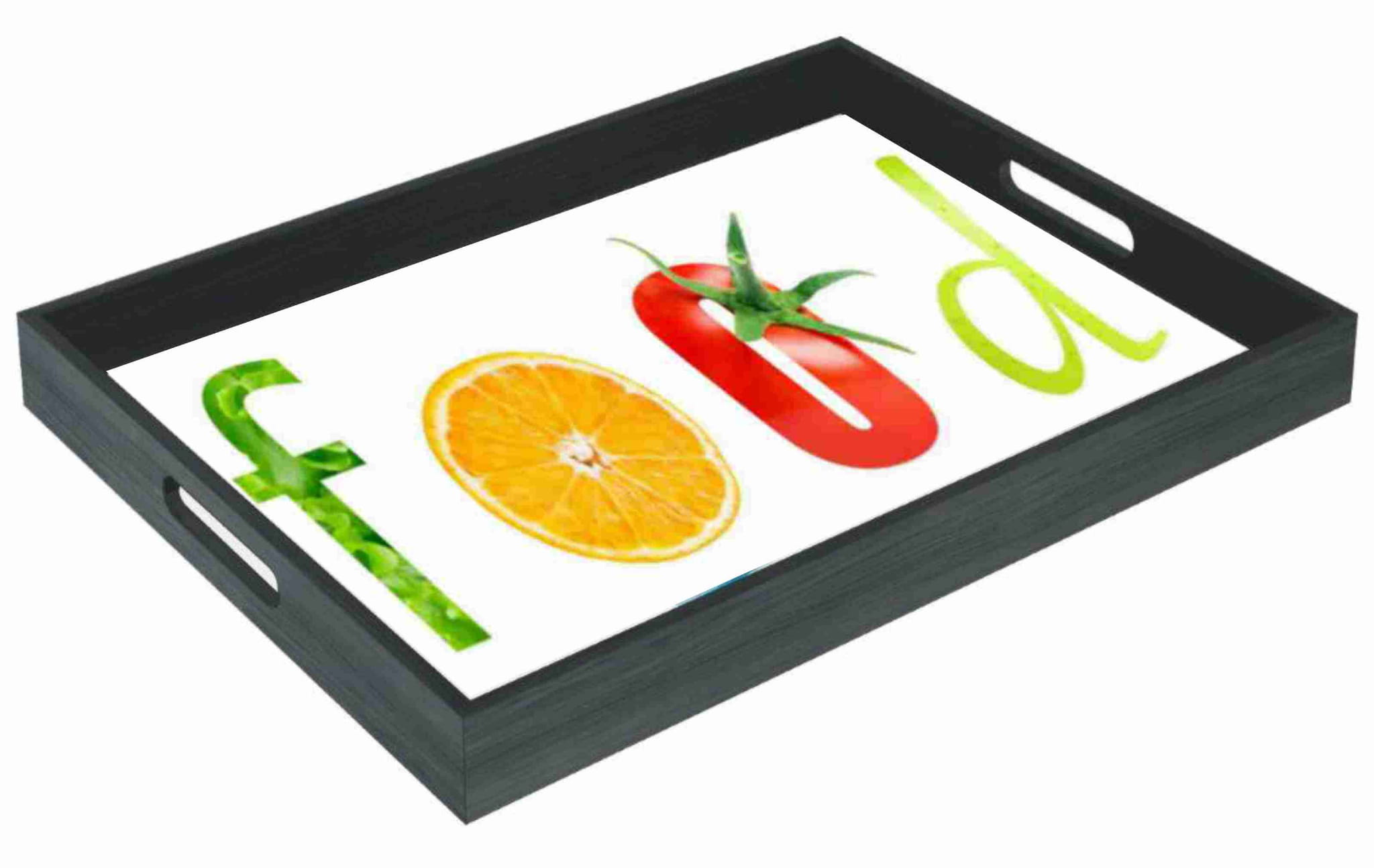 - Tray : stained and varnished wood with practical side handles .