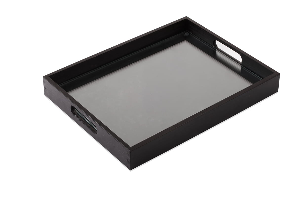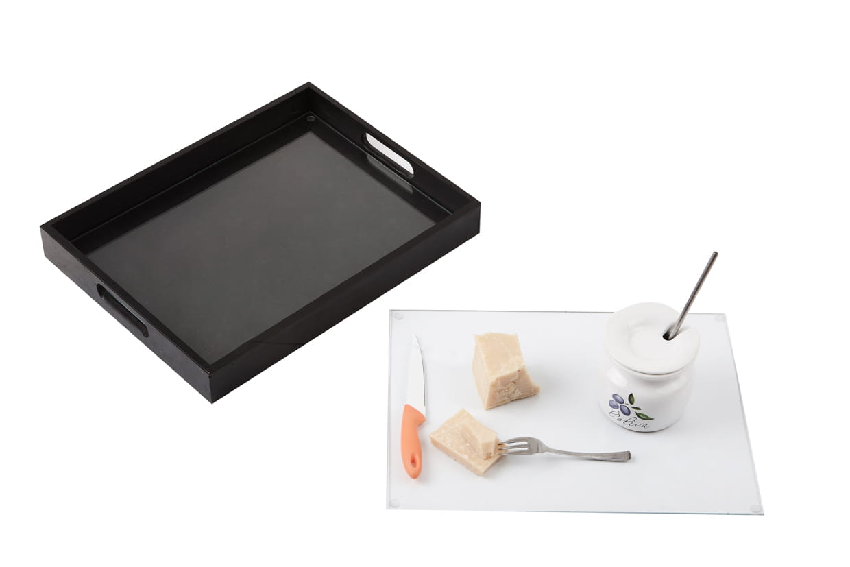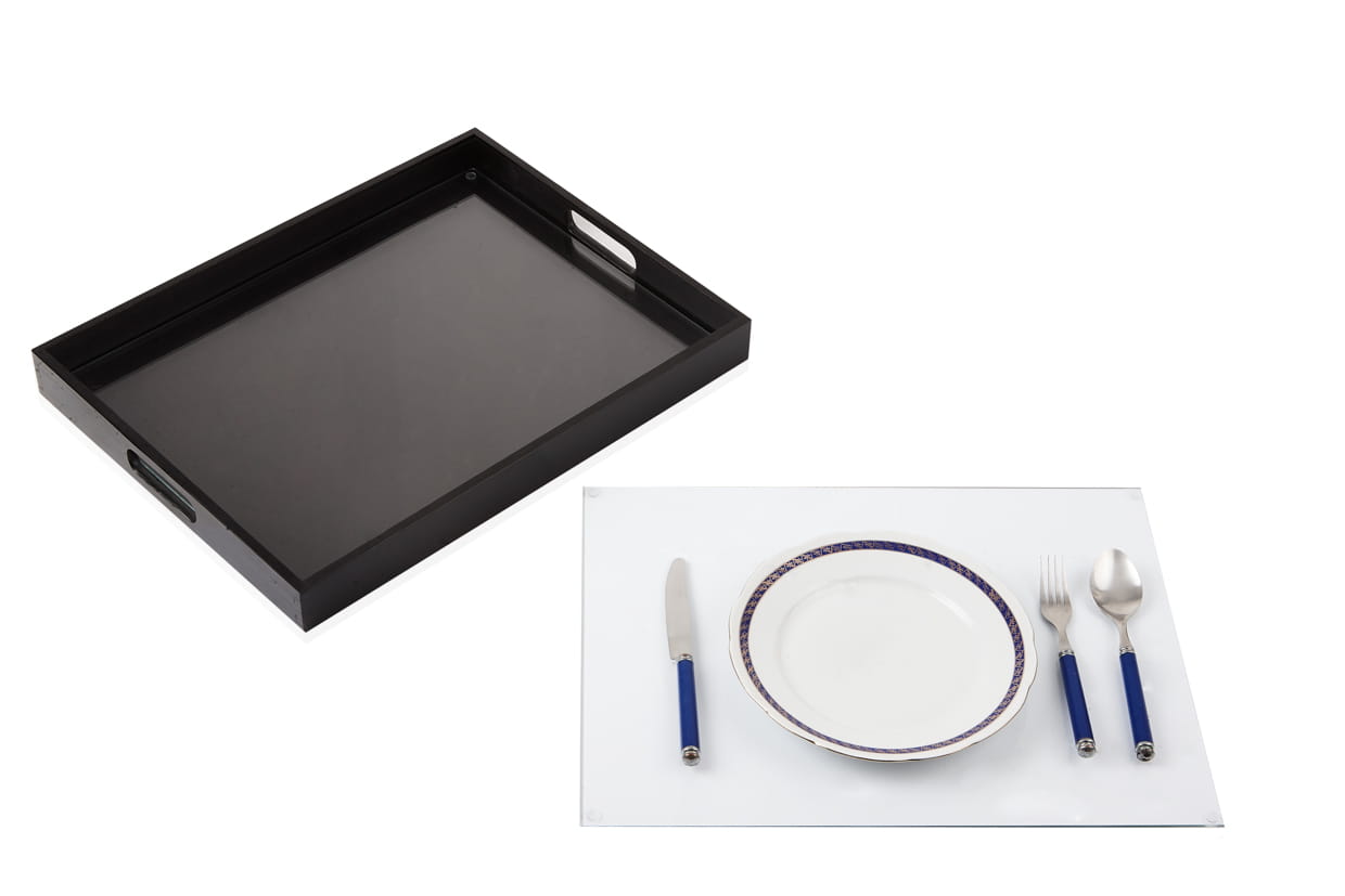 Practical trays with glass table mats .